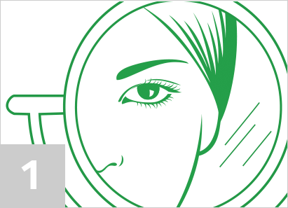 Nimm Deine nicht dominante Hand und ziehe Dein oberes Augenlid mit dem Zeigefinger leicht nach oben.