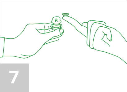 Um andere Linsenarten zu reinigen, forme mit der Hand eine leichte Vertiefung und gebe 2-3 Tropfen Deiner Mehrzweckflüssigkeit auf die Oberfläche Deiner Linse.