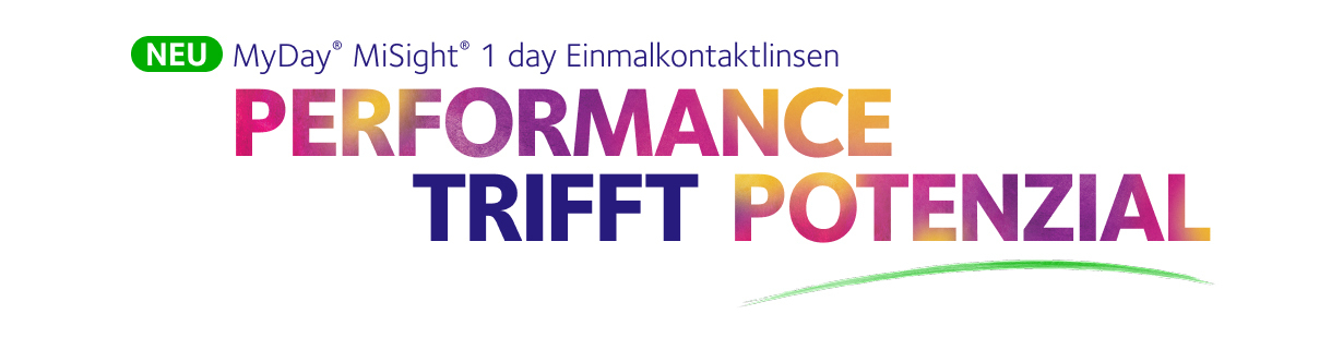 MyDay® MiSight® 1 day EinmalkontaktlinsenMit der MyDay® MiSight® 1 day treffen bewährte ActivControl® Technology und modernes Silikonhydrogel‑Material aus der MyDay® Familie aufeinander.*11 um das Fortschreiten der Myopie bei deinem Kind zu hemmen.†12,13