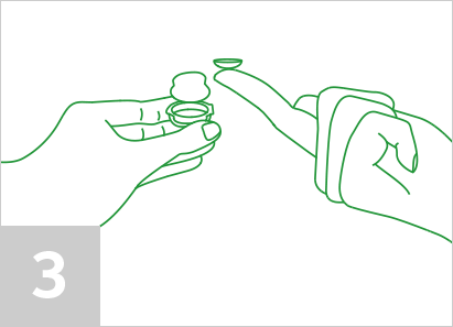Lege die Linse auf Deinen Zeigefinger und schauen Sie Dir an. Ist sie nach oben gekrümmt, wie eine Schale? Wenn ja, super! Denn das heißt, sie liegt richtig herum und hat sich nicht versehentlich umgestülpt. Wenn sie falsch herum auf Deinem Finger liegt, zeigen die Ränder der Linse leicht nach außen – ein bisschen, wie bei einem klassischen Teller. Jetzt kannst Du Deine Linse noch mit Kontaktlinsenlösung reinigen.